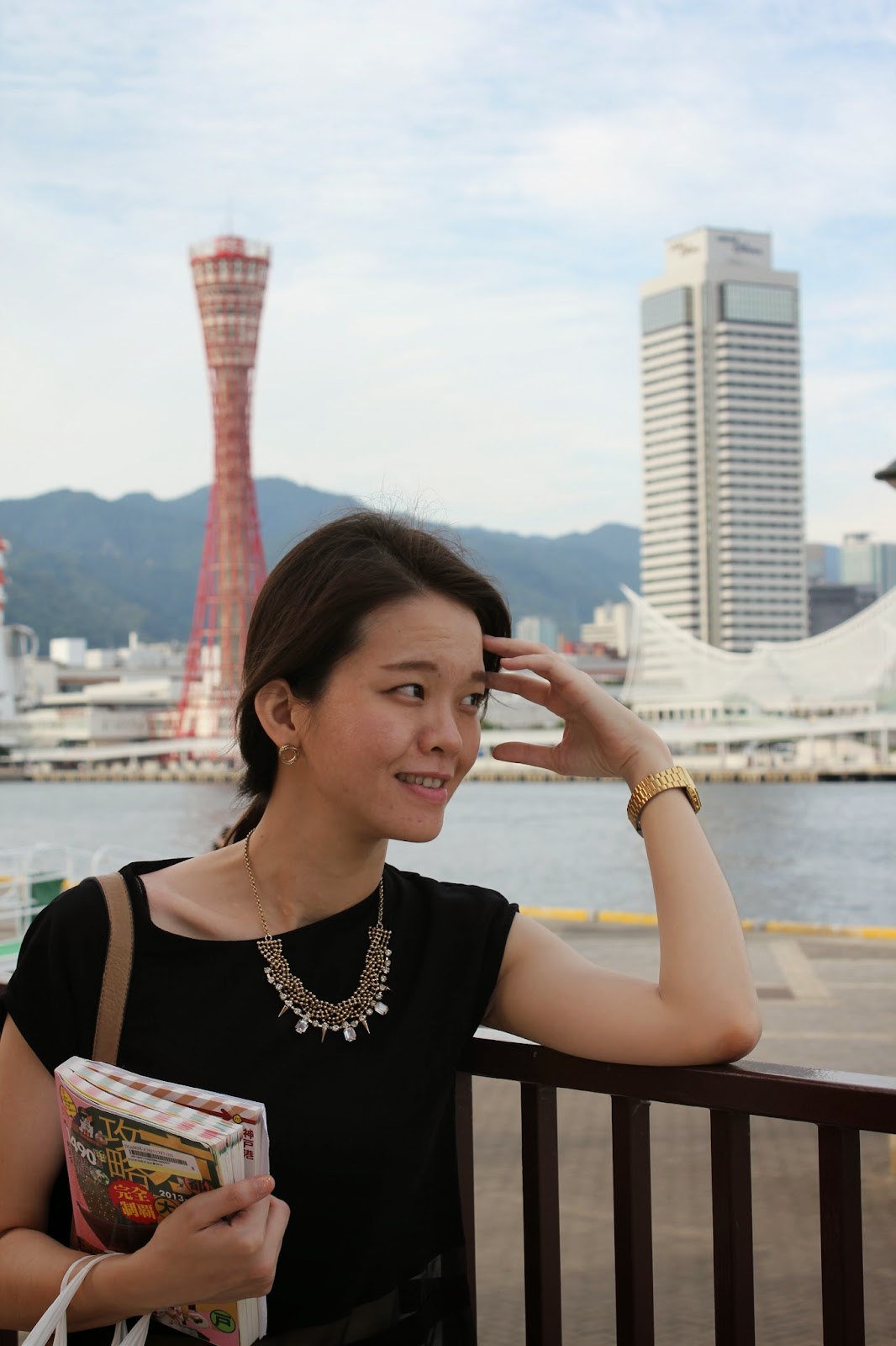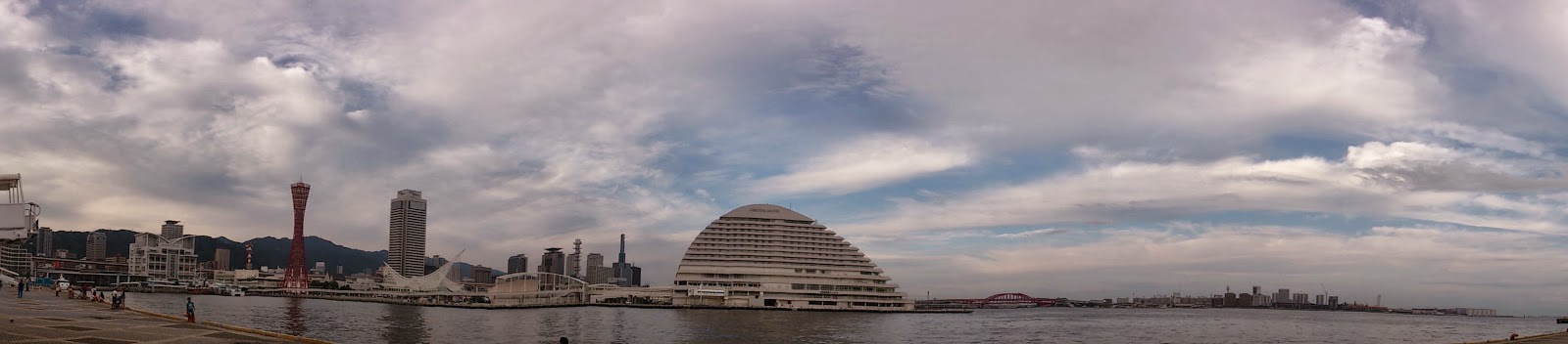對岸的紅色高塔是神戶港塔,旁邊的白色網型建築是神戶海洋博物館,