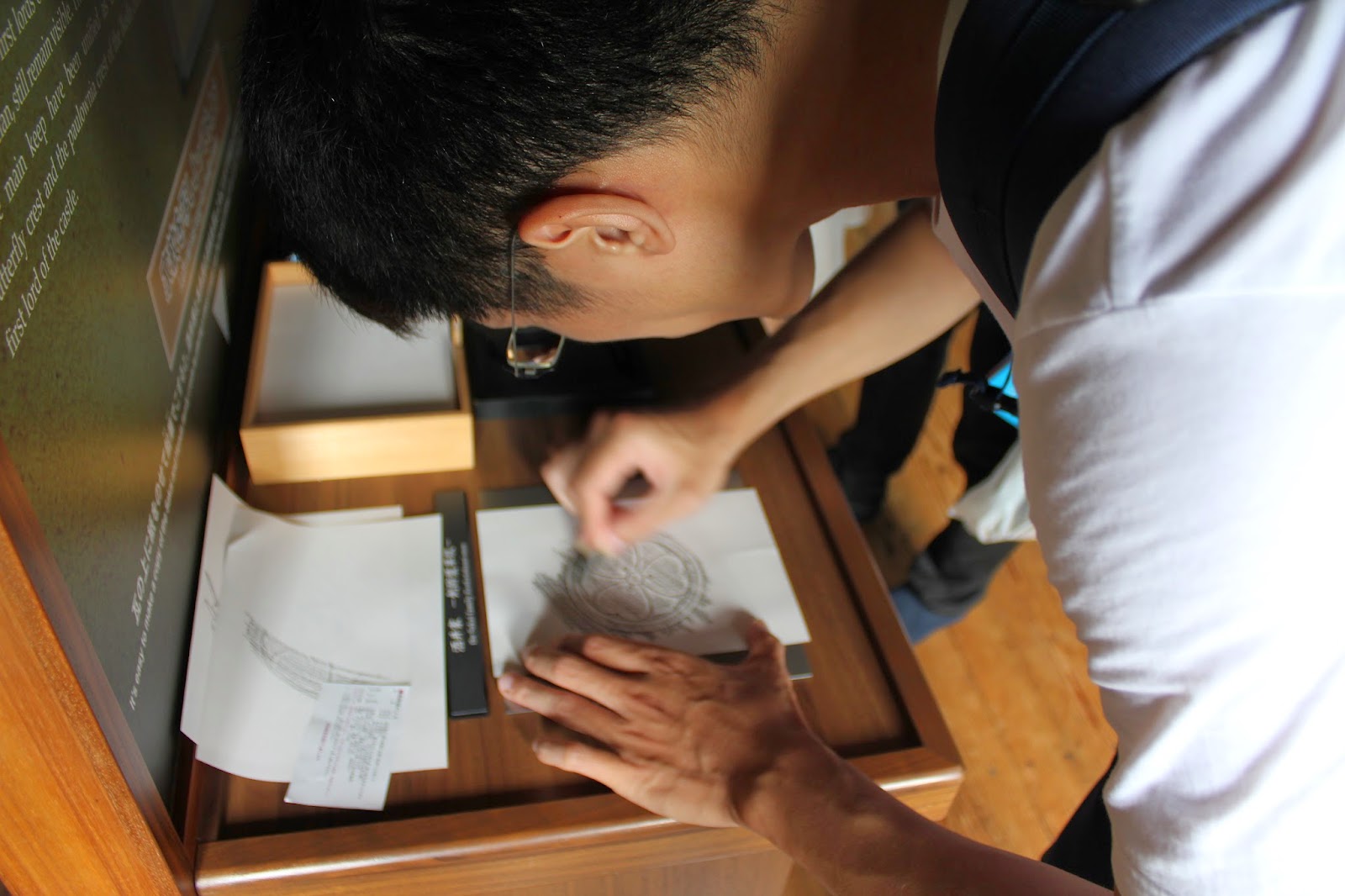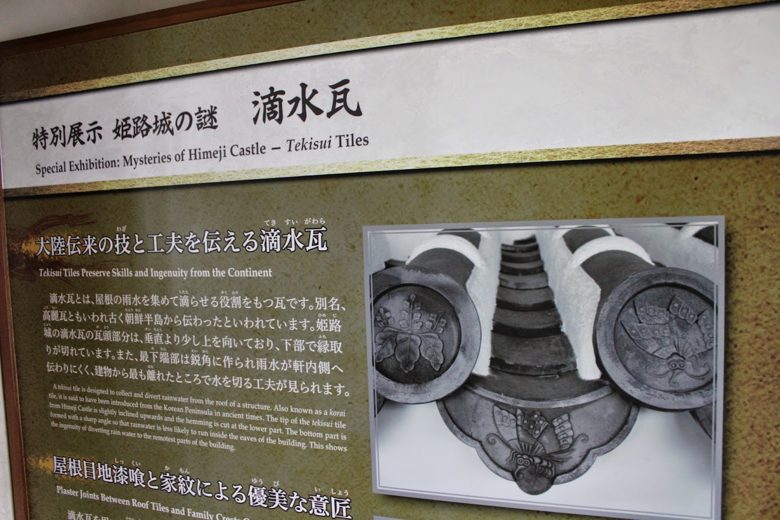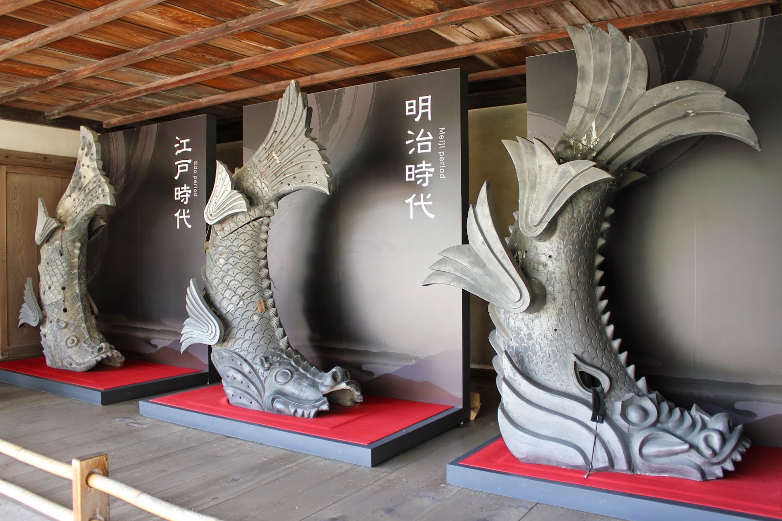 | 展覽室旁有各個時代的獸頭瓦模型,左至右江戶時代、明治時代和昭和時代 |