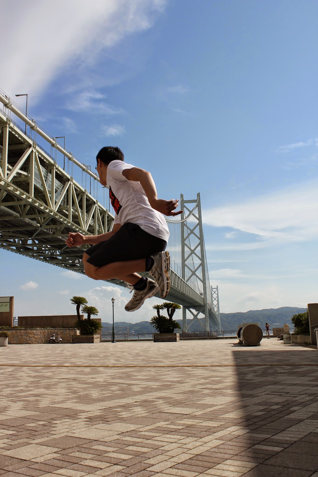 天氣很好,搭配這座明石大橋我們決定來張跳躍照。