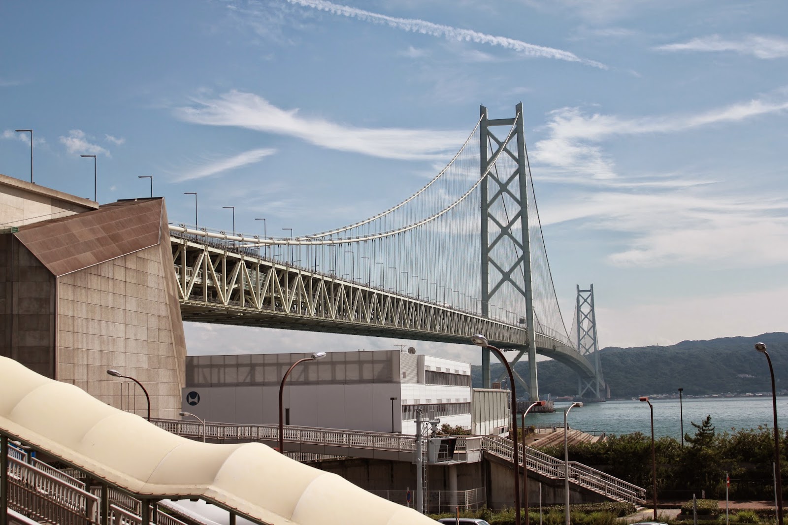明石大橋是世界最長的吊橋,全長3911公尺,中央兩座主塔間長1991公尺,