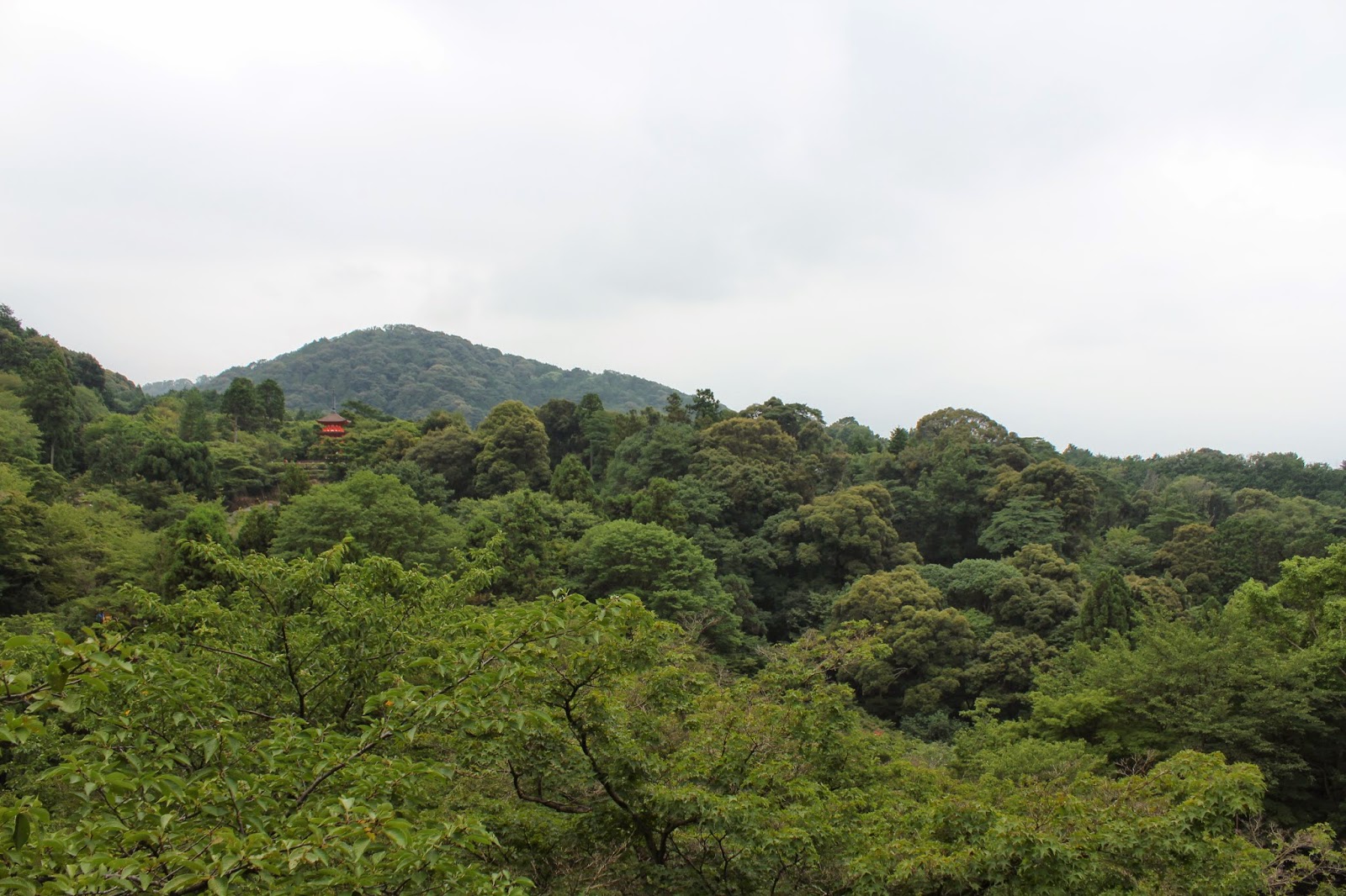 清水舞台居高臨下,可見樹林中的子安塔,