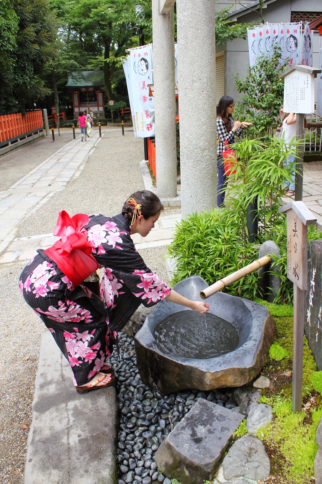接近早上十點,排隊喝一口延年益壽的音羽之潼泉水等了將近20分鐘,越晚人會越多。