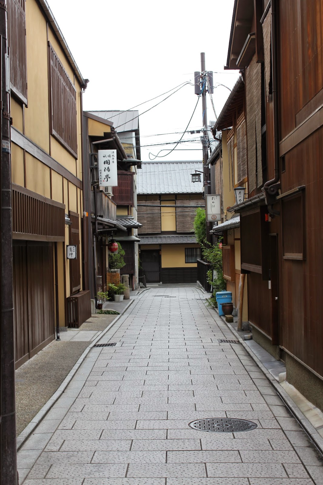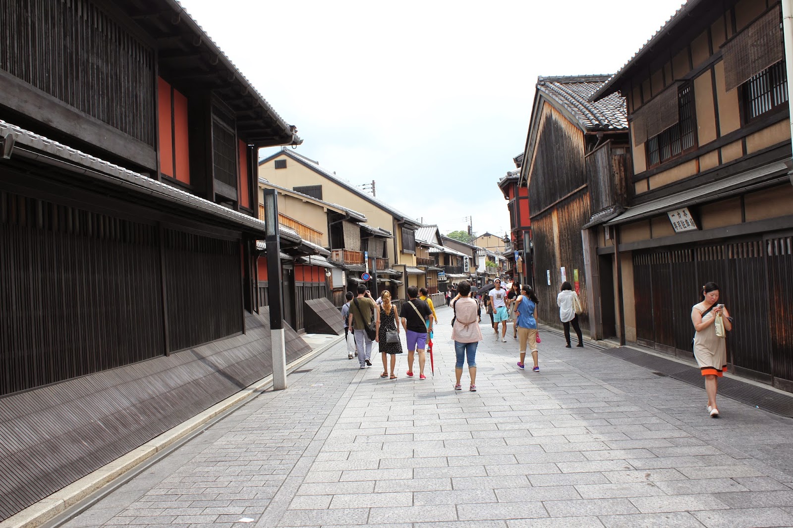花見小路起始於紅色的格子屋一力茶屋,兩旁有許多古老的木造建築。