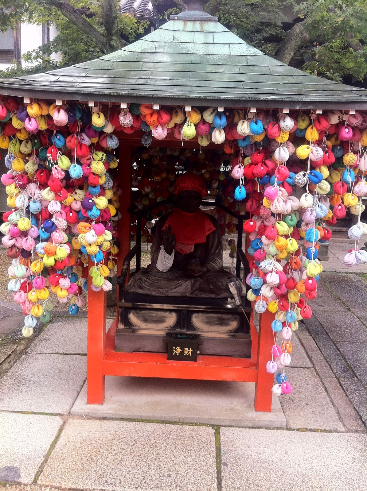 | 本堂與掛滿布猴子的菩薩像亭子 |