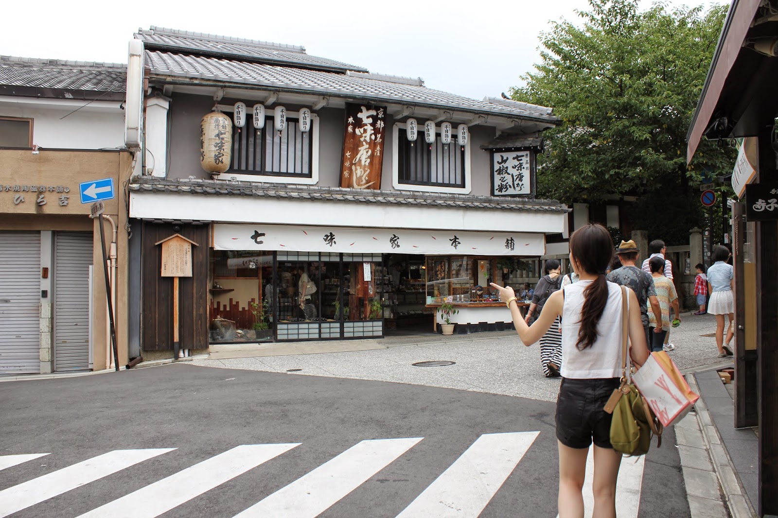 位於叉路的店家是有350年歷史,賣七味粉聞名的七味家,