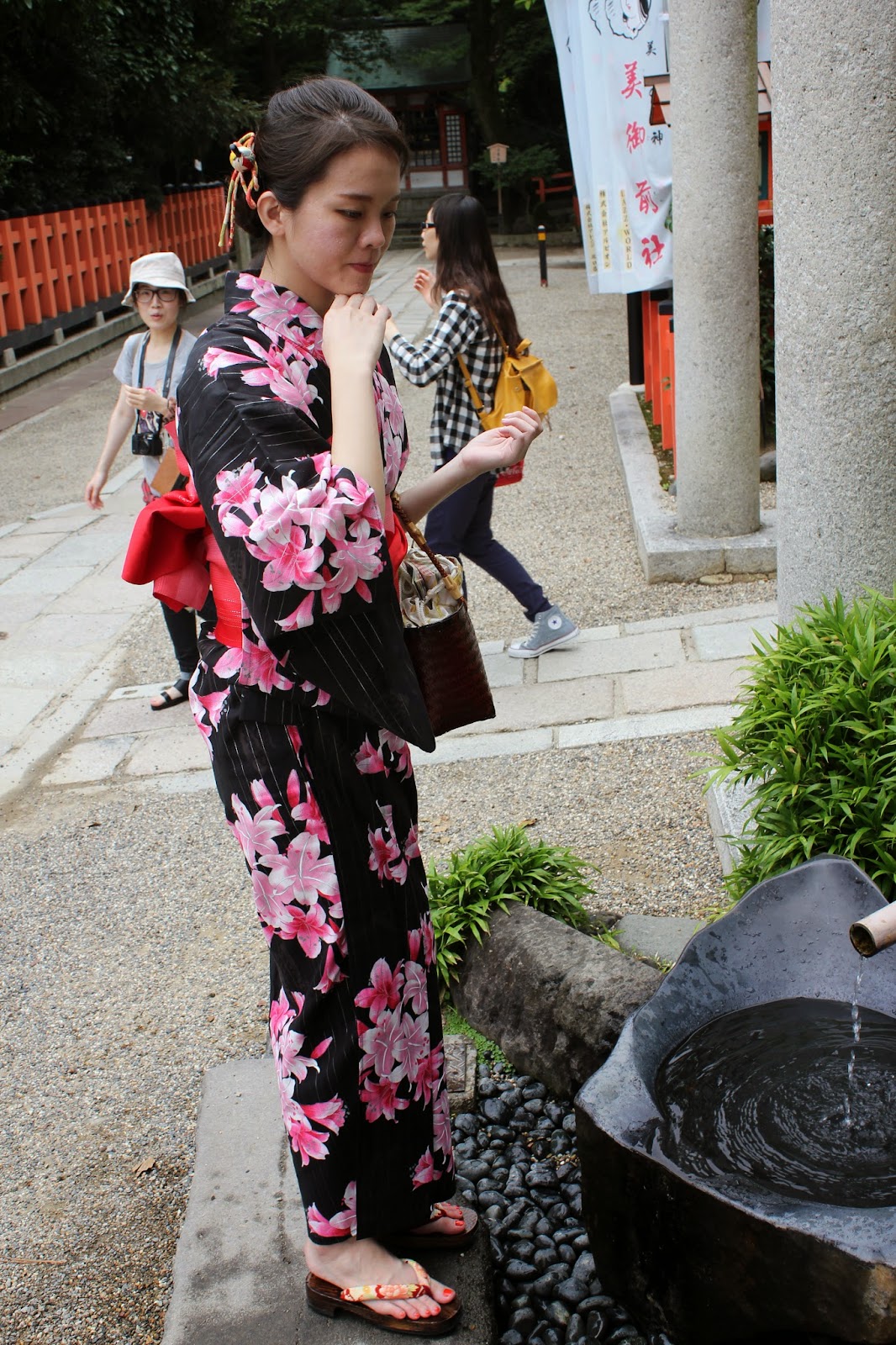 參觀完地主神社後,走下長長的階梯是音羽之潼,