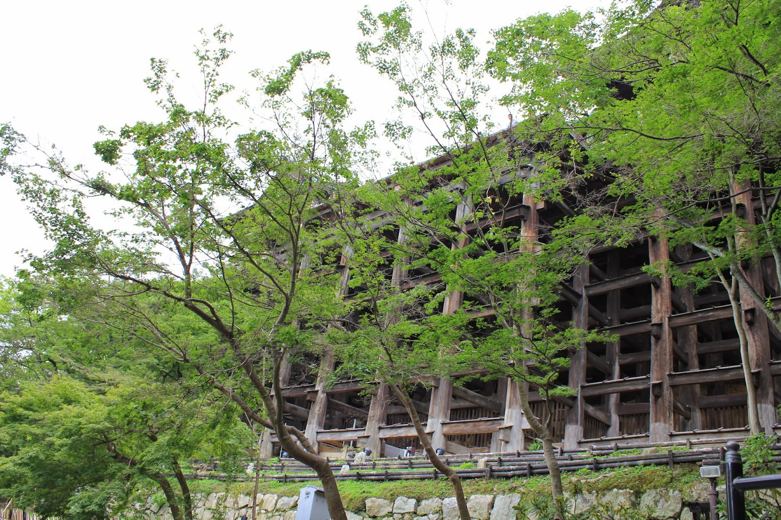 在長梯上還可近距離觀賞未動用任何一根釘子所架設的清水舞台底座。