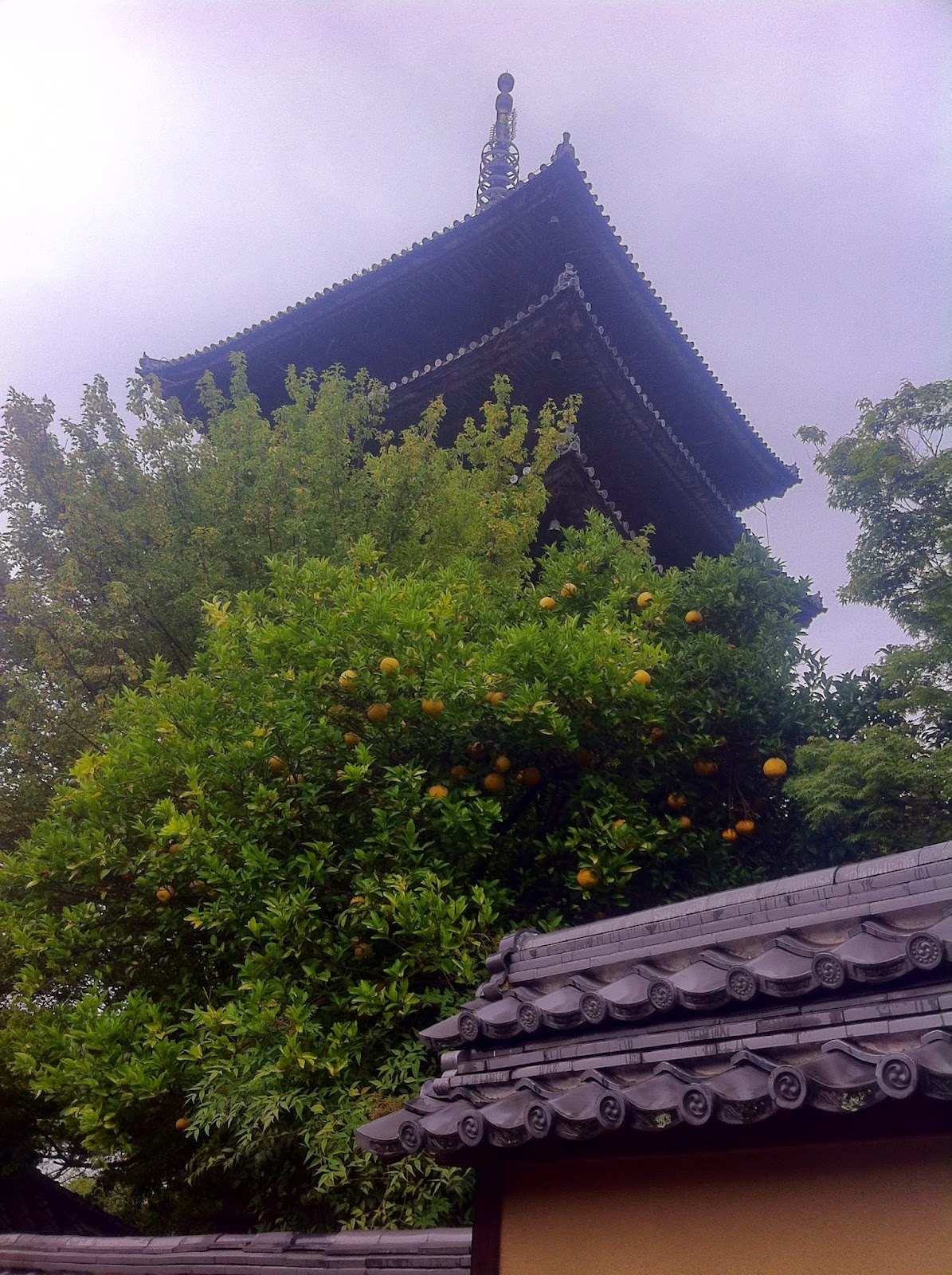 | 下著雨的八坂通,高聳入天的八坂之塔 |