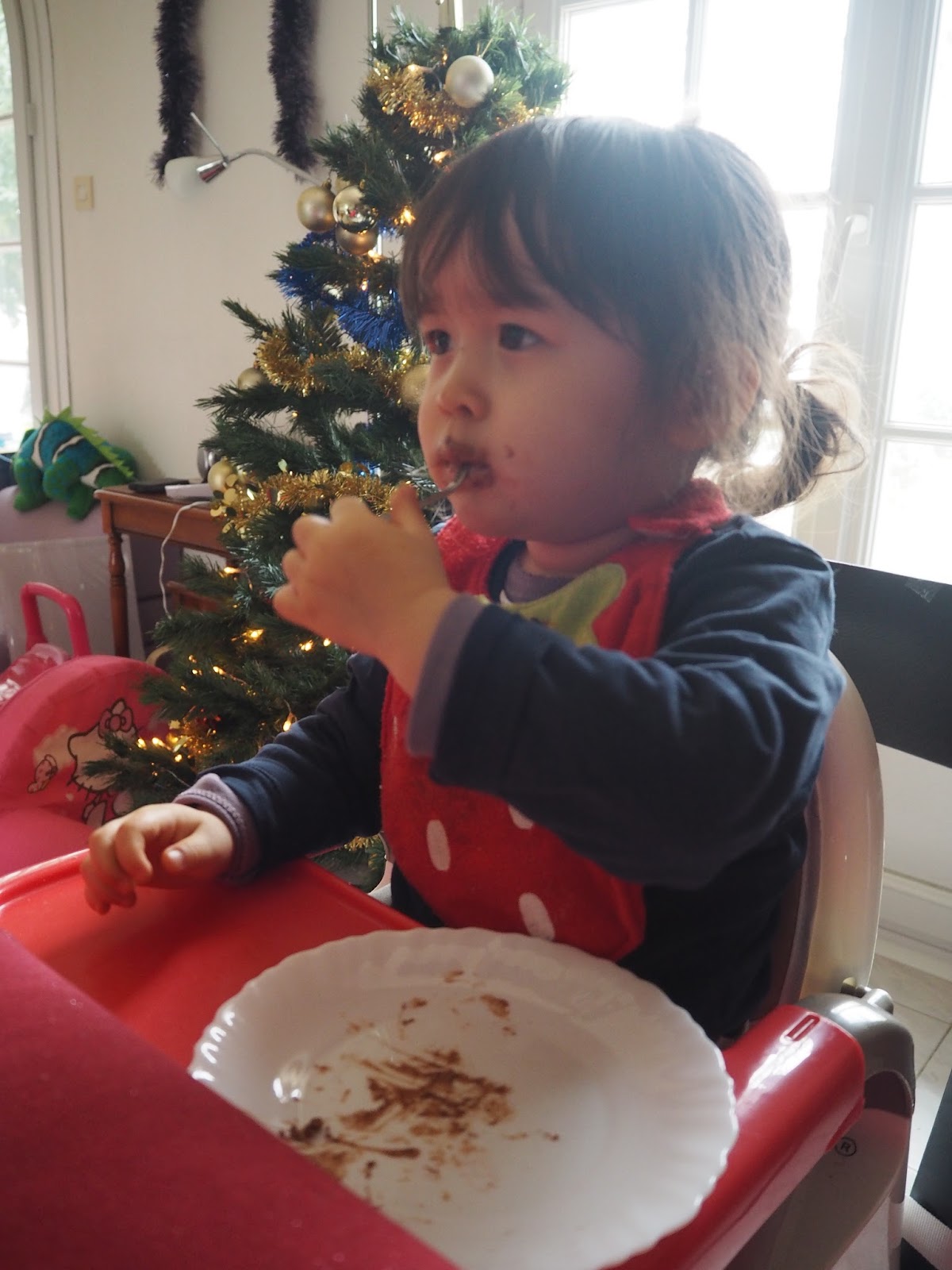 | 今天的桌巾是充滿喜氣的紅色,迎接新的一年 |
