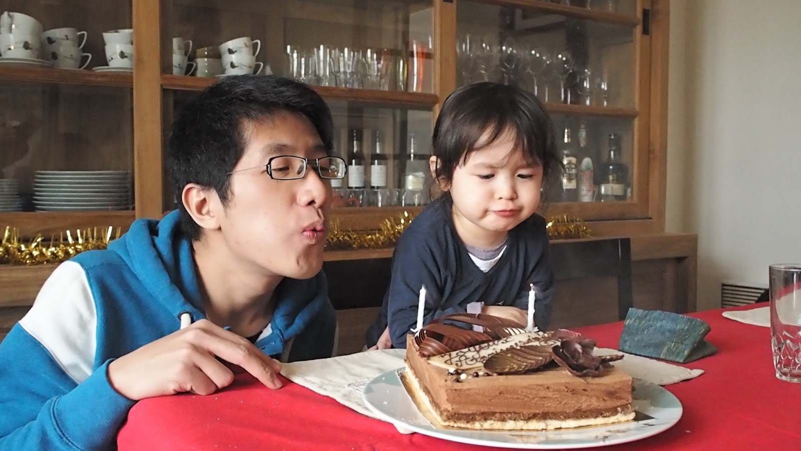 一轉眼已經在就定位置等著吹蠟燭。