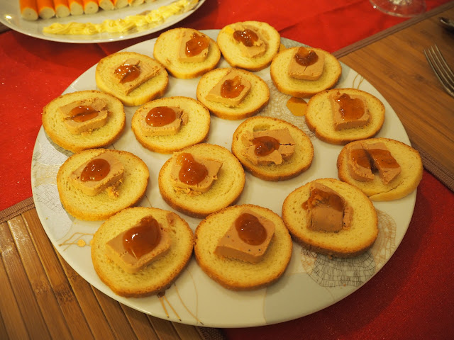 開胃菜是麵包鴨肝醬與蟹味棒。