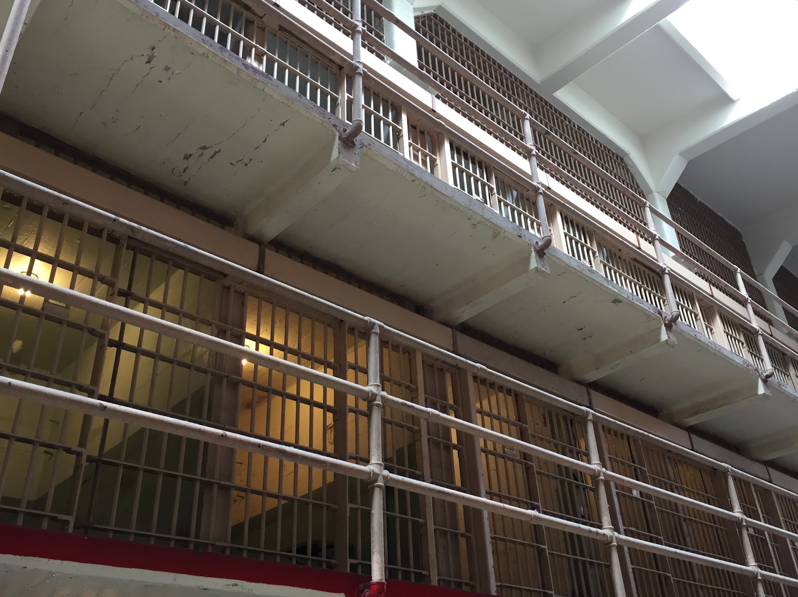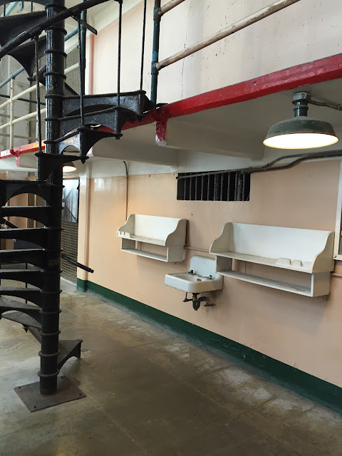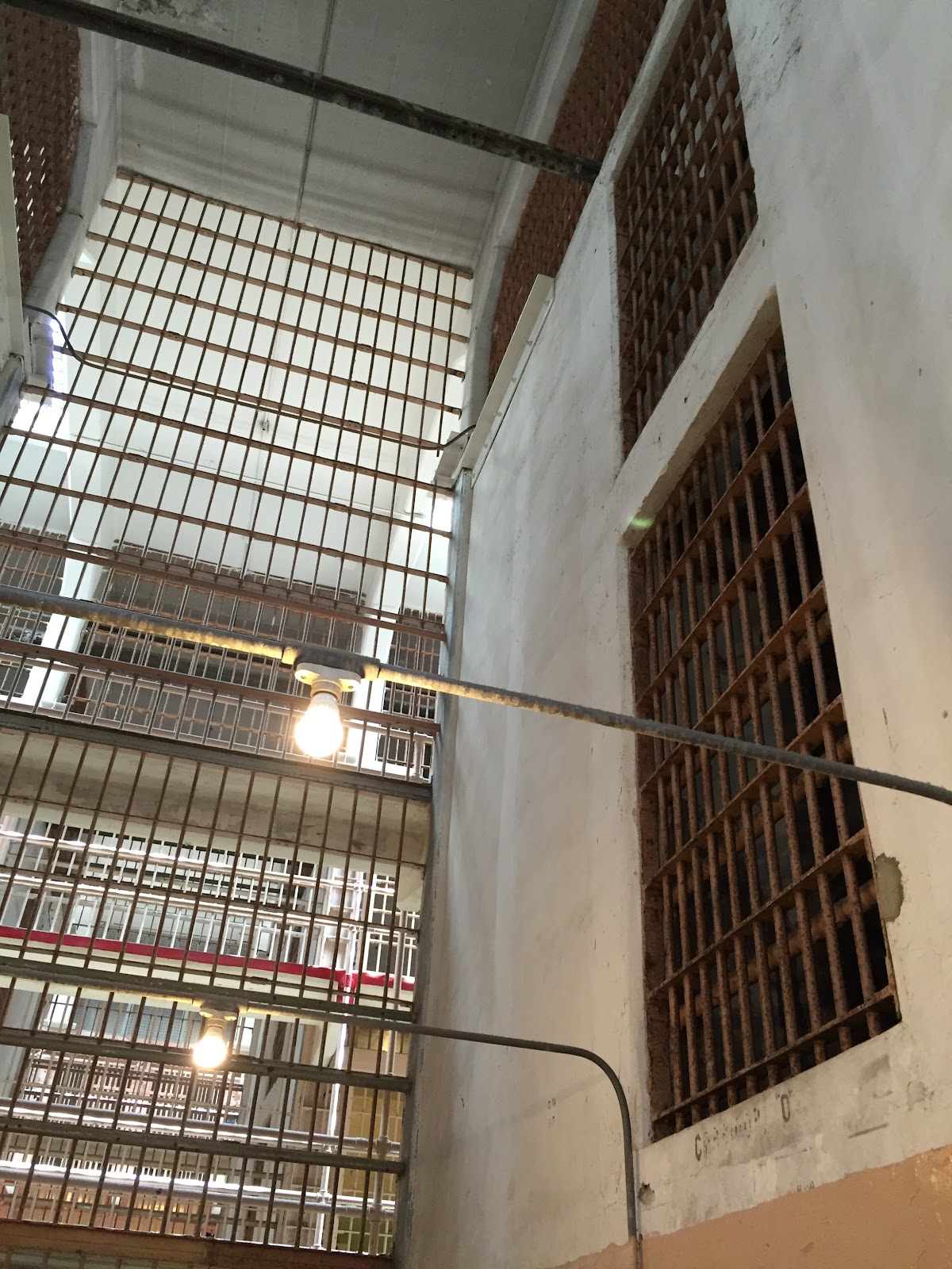 從旁邊的迴旋樓梯上去二樓是主要的牢房區,分成A~D區,每區皆有三層牢房。