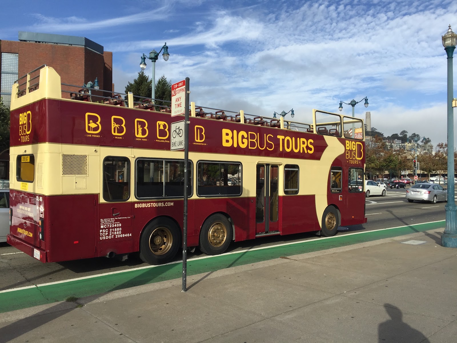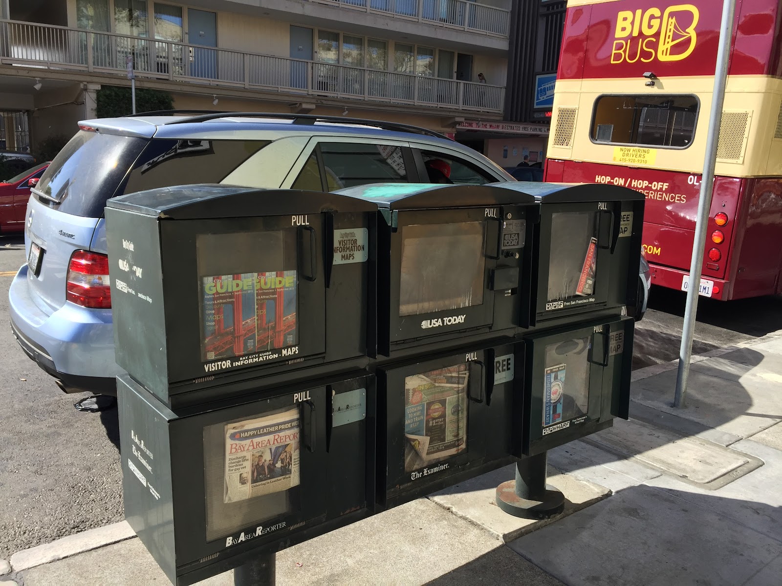 各種觀光巴士載著遊客遊舊金山市區。