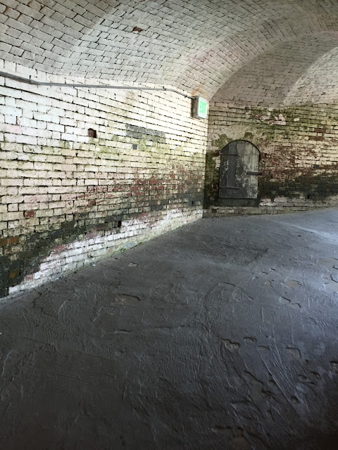 | 磚頭砌成的牆壁,昔日的軍方與眷屬宿舍,今日作為惡魔島的歷史展覽室 |