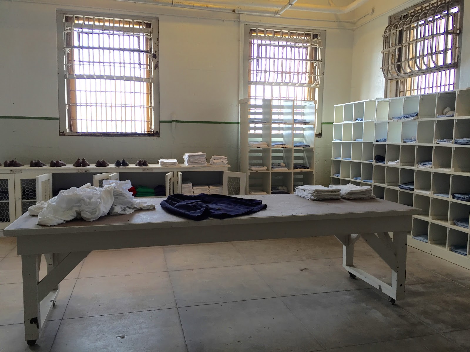 | 囚犯的衣物、鞋子與盥洗毛巾及其置物櫃的配給處 |